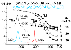 Температурные зависимости ширины спектров ЯМР 7Li