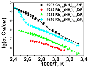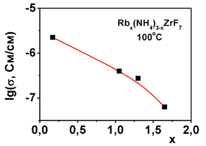 ионная подвижность в гептафтороцирконатах (NH4)(3–x)RbxZrF7