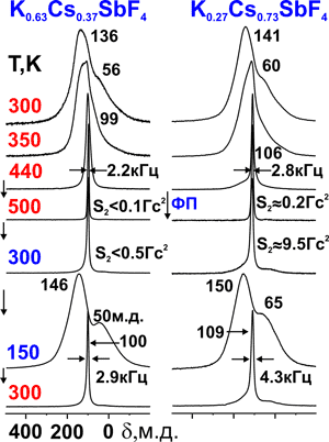 Анализ спектров ЯМР 19F кристаллических фаз K(1–x)CsxSbF4